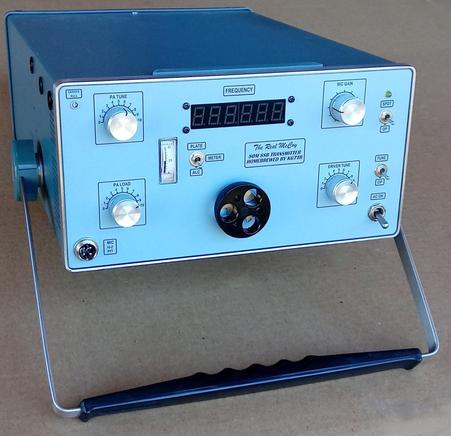 “The Real McCoy” is a vacuum tube, single sideband (SSB) transmitter that operates lower sideband (LSB) only, at any frequency from 3.5 to 4.0 MHz, with nominal 100 watts peak envelope power (PEP) output. I built this radio primarily for use on the west coast Vintage SSB Roundtable that meets Tuesday nights on 3.895 MHz. Its design and construction meet all of the vintage criteria for use on that net. The Real McCoy is now owned by NU6X.